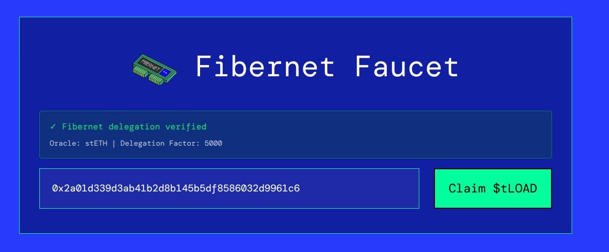 Now that we have all the API pieces together, we can finally build our $LOAD delegations FLP-gated faucet for Fibernet. In this blog post we wont go in details on how to hook a REST API with a UI and add you intermediate custom logic (claude it :D) - so here’s a sneak peek: