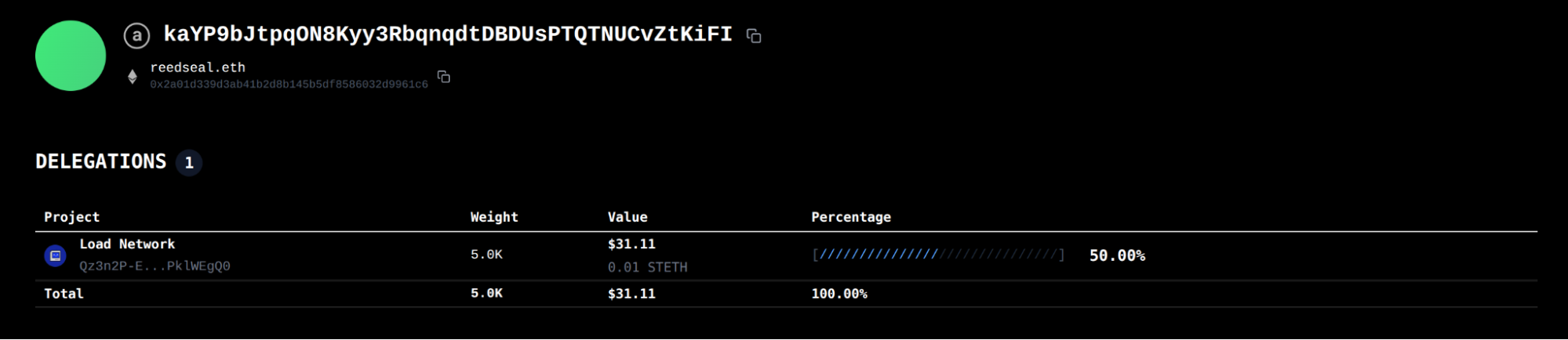 Taking this LOAD staker profile, found easily on atlas.decent.land, we have the EOA: 0x2a01d339d3ab41b2d8b145b5df8586032d9961c6
